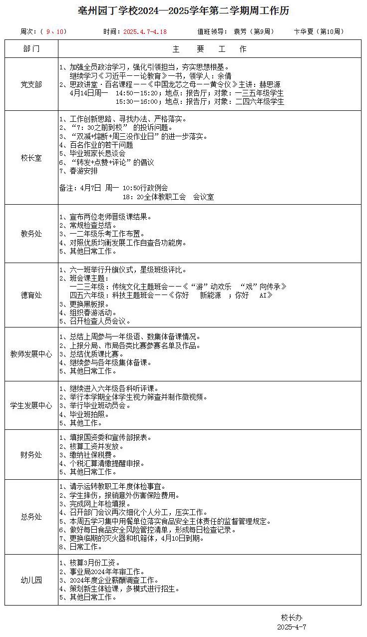 亳州園丁學校3.9---3.13日菜單