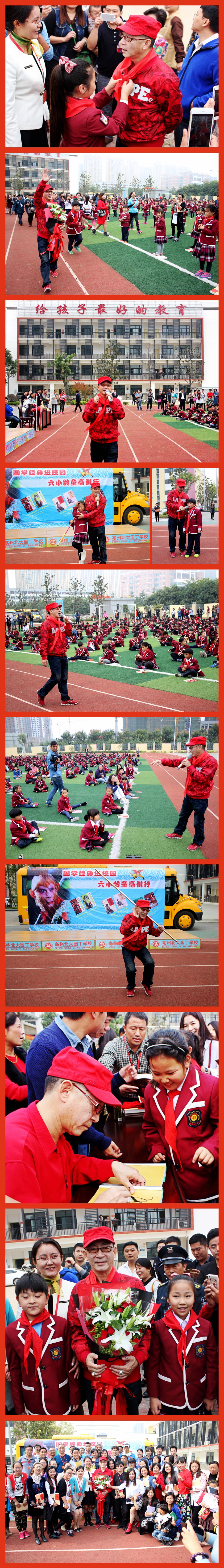 為了豐富園丁校園文化生活,建設(shè)書(shū)香校園,進(jìn)一步提升學(xué)生的閱讀理念,培養(yǎng)孩子“讀好書(shū),愛(ài)讀書(shū)”的好習(xí)慣,10月22號(hào)上午,北大園丁學(xué)校特邀請(qǐng)電視劇《西游記》中“美猴王孫悟空”的扮演者章金萊(六小齡童)老師蒞臨我校,在我校舉辦了“傳播悟空精神,弘揚(yáng)西游文化”公益講座及簽名活動(dòng)。