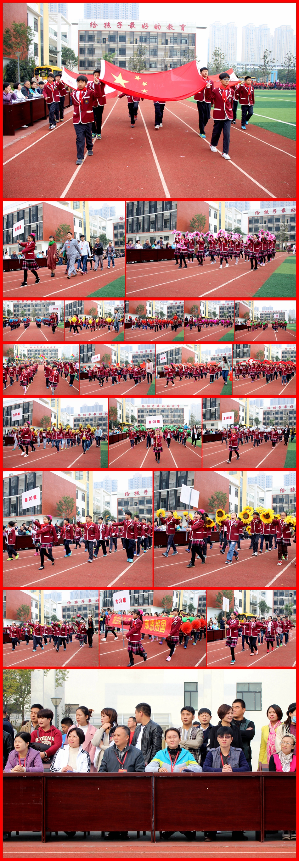 10月29日上午8點30分,伴隨著慷慨激昂的音樂聲,我校舉行了第二屆田徑趣味運動會開幕式,氣勢磅礴的國旗護衛(wèi)隊、公正無私的裁判代表隊、活潑可愛的鮮花方隊以及18個風(fēng)格各異的班級方隊排著整齊劃一的隊伍、喊著響徹天際的口號逐一步入主席臺接受檢閱。