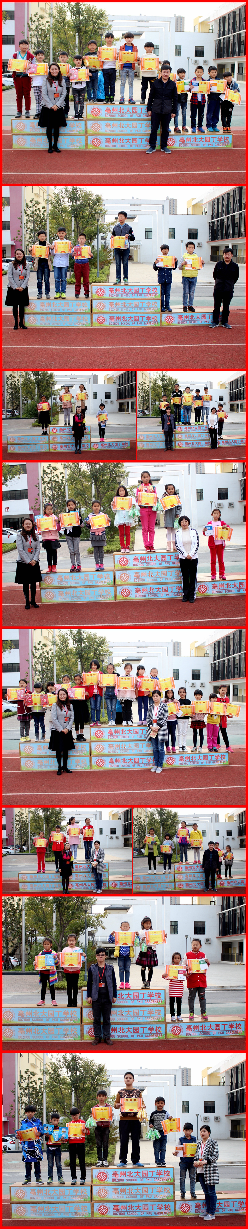 經(jīng)過各班級、各部門的高效配合,本屆運動會于29日下午圓滿結(jié)束,并于30日下午三點整舉辦了頒獎典禮暨閉幕儀式。各班級依次有序地進入綠蔭操場,滿懷期待地認真聽張盼老師宣讀獲獎名單,驕傲而又熱烈的掌聲伴隨著各個獎項獎品的頒發(fā),個人獎、團隊獎、班級獎……都極大地鼓舞著孩子們那顆勇爭上流的心。隨后,此次運動會的總指揮武老師作了閉幕致辭,由此,亳州北大園丁學(xué)校第二屆田徑趣味運動會圓滿成功,落下帷幕!
