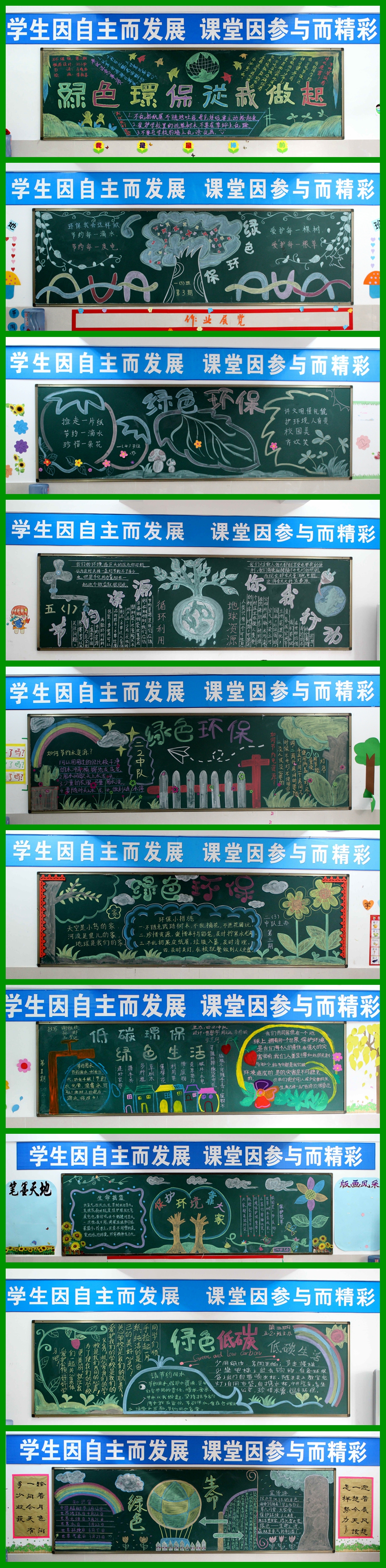 為了增強(qiáng)學(xué)生的節(jié)能環(huán)保意識(shí),提高學(xué)生自身素質(zhì),美化校園環(huán)境,11月10日,學(xué)校特開展了以“節(jié)能環(huán)保,綠色園丁”為主題的班級(jí)黑板報(bào)評(píng)比活動(dòng)。