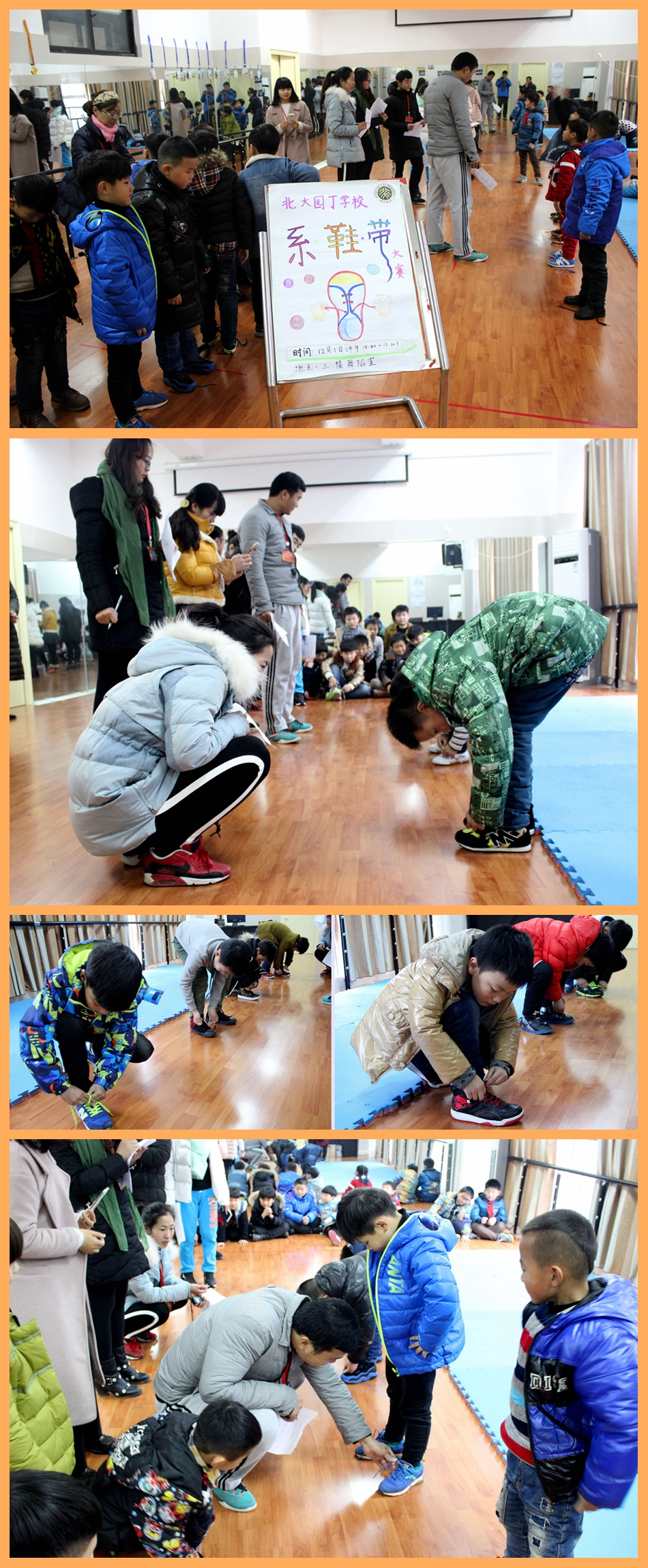 活動(dòng)現(xiàn)場(chǎng)氣氛緊張有序,只聽(tīng)老師一聲令下:“開(kāi)始!”,參賽的同學(xué)馬上行動(dòng)起來(lái),自信地投入比賽,他們神情自若,爭(zhēng)分奪秒,動(dòng)作嫻熟,沉著迎戰(zhàn),許多孩子都能熟練地掌握系鞋帶和扎頭發(fā)的技巧,甚至有的孩子還能巧妙的來(lái)點(diǎn)花樣,讓我們的活動(dòng)大放異彩。