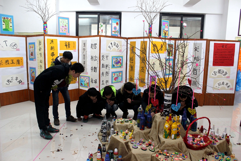 此次迎新書畫展作品形式多樣,但全都是學(xué)生平常的作品。有書法和左右腦書法作品,有學(xué)生繪畫作品,有剪紙作品,有瓶身繪圖和紙碟繪圖作品,還有輕泥土手工DIY作品……書法作品筆力勁挺,學(xué)生們雖小小年紀(jì),作品卻已入木三分,其中六(1)班張惠軒同學(xué)的左右手同時(shí)書更是獲得了第22屆國際世界兒童畫展的金獎(jiǎng);繪畫作品惟妙惟肖,色彩搭配深淺有度;剪紙作品更是展現(xiàn)了我校對(duì)傳統(tǒng)文化的重視,“福”字春聯(lián)的設(shè)計(jì)充分體現(xiàn)了新年即將到來的濃厚氛圍;瓶身繪圖以及紙碟繪圖趣味橫生,學(xué)生們的作品各個(gè)都創(chuàng)意新穎,可以看出我校并不是空談“給孩子最好的教育”,而是付諸于實(shí)打?qū)嵉慕逃ぷ髦校购⒆拥南胂罅皠?chuàng)造力都有了極大的提升和展示其的舞臺(tái);公主、城堡、食物以及帶有圣誕和新年元素的輕泥土手工DIY更是讓人愛不釋手,原本只是一塊塊毫無特色的輕泥土,在我校孩子的手中也富有了生命力,仿佛被注入了靈魂一般,有了自己的色彩……這些作品不僅給師生及家長們帶來了美的享受,還充分展示了我校近30種興趣班教學(xué)的豐碩成果。
