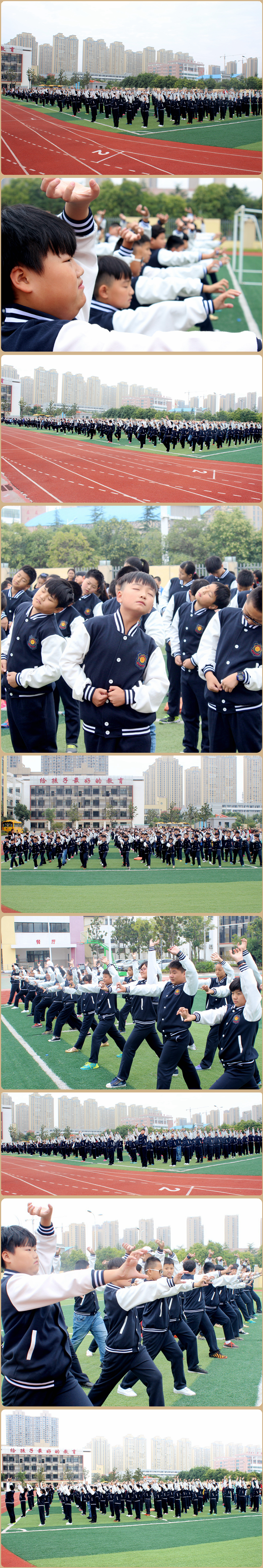 本款校服設(shè)計以棒球服為原樣,款式新穎,簡單大方,更加彰顯孩子們的朝氣和活力!再看,國慶長假后上課的第一天,校園里到處洋溢著孩子們的歡聲笑語,課間操時惹眼的校服更是美到爆表!
