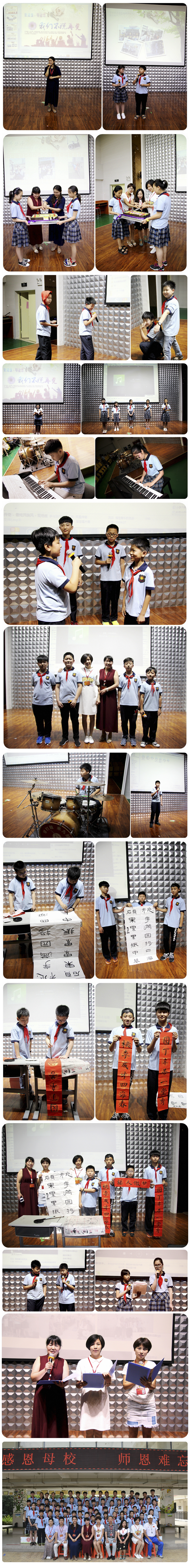 典禮上,畢業(yè)生們還一起觀看了老師精心制作的PPT,一張張圖片喚起了大家對在校生活的記憶。隨后,同學(xué)們各展其能,唱歌、彈琴、架子鼓、朗誦、演小品……他們用最精彩的表演,展示了自己在小學(xué)階段的快樂生活,表達(dá)了對老師的感恩和對未來學(xué)習(xí)生活的向往。千言萬語,道不盡同學(xué)們這份濃厚的園丁情。