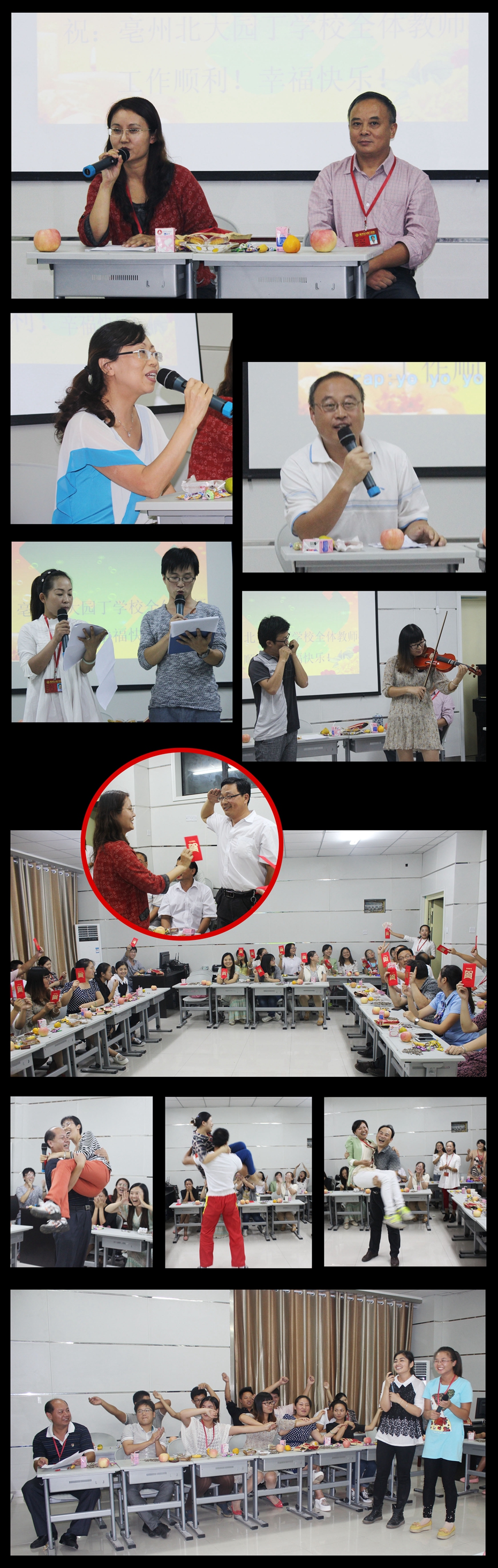 最后,在《長(zhǎng)大后我就成了你》的音樂(lè)聲中,袁芳校長(zhǎng)和王榮先副校長(zhǎng)為全體教師發(fā)放 “節(jié)日紅包”! “做個(gè)幸福的老師”教師節(jié)茶話會(huì)在三對(duì)教師夫婦“幸福抱抱”的大聯(lián)歡中落下了帷幕?。ㄕ嫜裕?o:p>