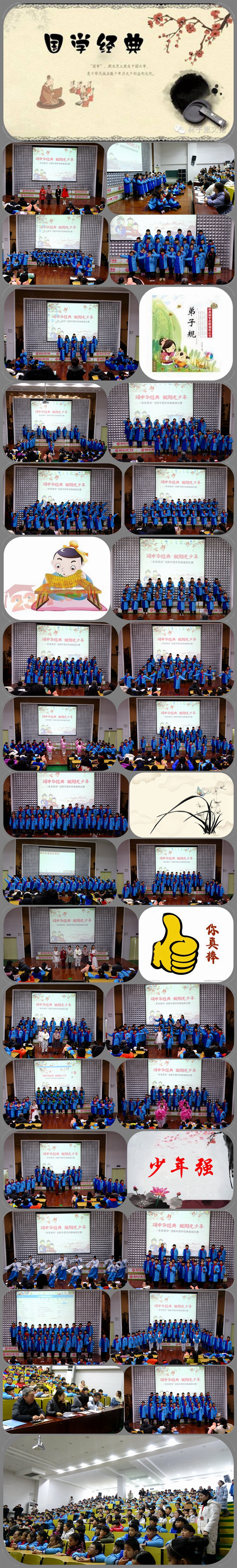 國學(xué)經(jīng)典是中華文化中最優(yōu)秀、最精華、最有價值的典范性著作。為推動學(xué)校特色文化建設(shè)和誦讀國學(xué)經(jīng)典活動深入開展,充分展示我校學(xué)生誦讀國學(xué)經(jīng)典的成果,以嶄新的姿態(tài)迎接新年的到來,12月28號,我校舉辦了“頌中華經(jīng)典 做陽光少年”國學(xué)經(jīng)典誦讀比賽活動。