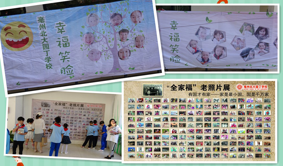一大早家長和孩子們興高采烈的來到校園,演出前他們來到“笑臉墻”前駐足觀看,看著一個個天真無邪、活潑可愛的笑臉,家長們也仿佛回到了童年。家是最小國,國是千萬家,站在老照片墻邊,同學(xué)們感受到了黑白與彩色的變遷。