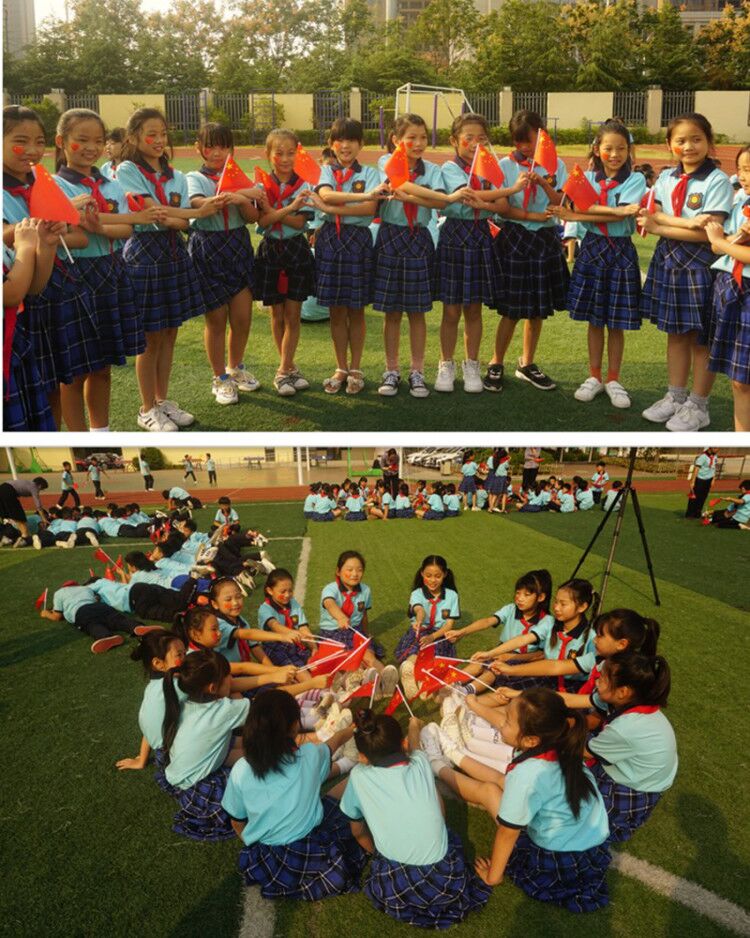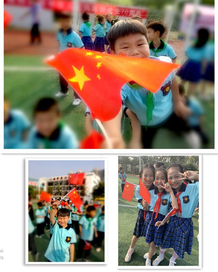 看,陣容整齊的北大園丁學(xué)子以“70”字樣的方陣,手持國(guó)旗,精神抖擻,北大園丁藍(lán)校服,國(guó)旗紅領(lǐng)巾,迎著早晨的陽(yáng)光,映射出未來(lái)的希望。優(yōu)美旋律里,稚嫩童聲中,洋溢著對(duì)祖國(guó)的愛(ài),對(duì)祖國(guó)的感恩,對(duì)祖國(guó)的祝福。