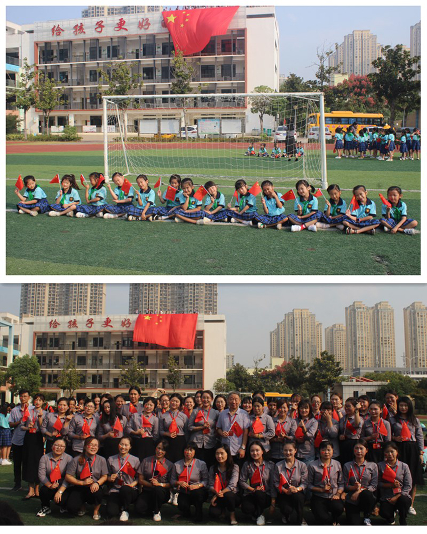 方陣中央是我們?nèi)w教職工隊(duì)伍,手執(zhí)巨幅國(guó)旗。他們目光如炬,他們莊嚴(yán)肅穆,他們帶著身為教師的榮譽(yù),帶著感恩祖國(guó)的滿腔情意。心中立誓:教好書(shū),育好人,爭(zhēng)做優(yōu)秀教師,培養(yǎng)好我們的天之驕子,推進(jìn)亳州北大園丁小學(xué)教育事業(yè)蓬勃發(fā)展!