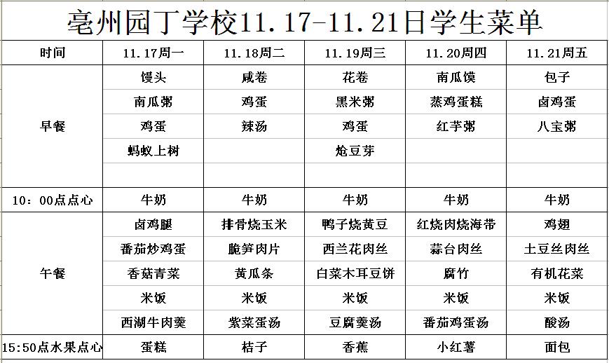 11.17-11.21日學(xué)生菜單
