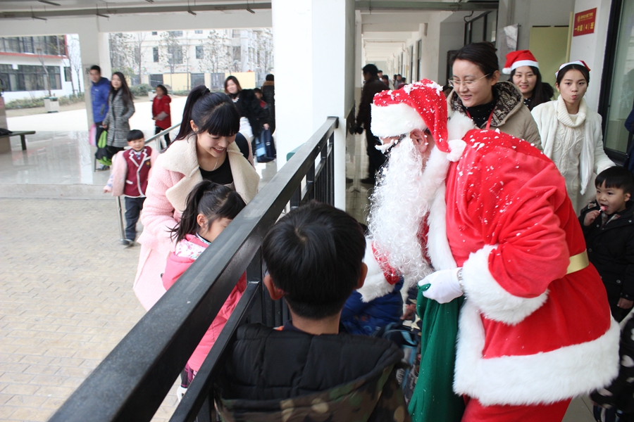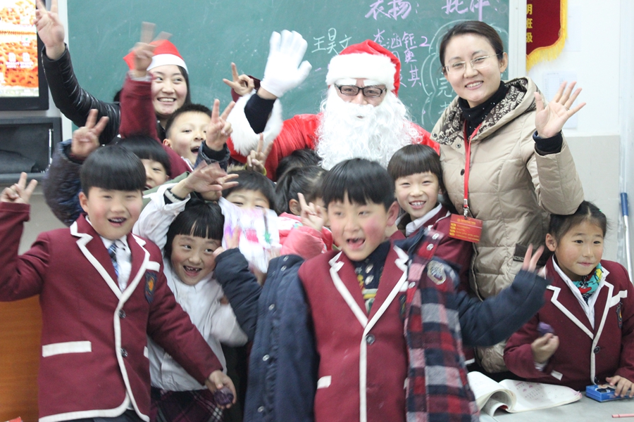 12月25日是圣誕節(jié),下午三點半,我校胥克宏主任扮成了“圣誕老人”降臨每個班級給孩子們派發(fā)糖果,為同學(xué)們送上驚喜,送上節(jié)日的祝福!