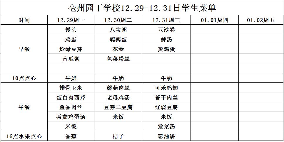 亳州園丁學校3.4--3.6日菜單