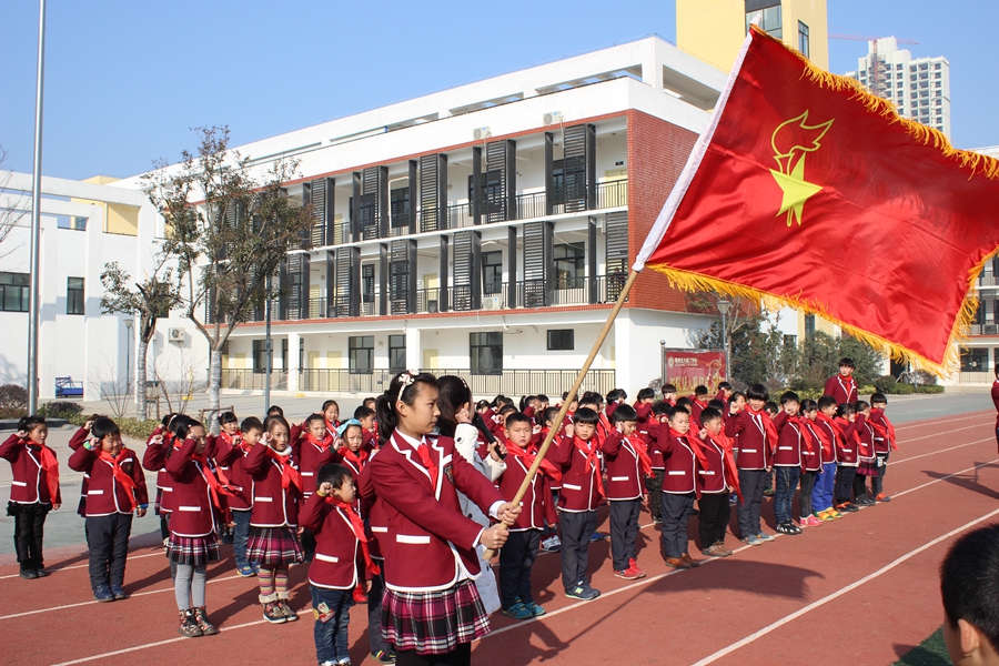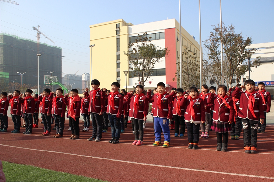 12月29日上午,陽光明媚,亳州北大園丁學校的操場上隊旗高高飄揚,原來學校正在舉行莊嚴而又隆重的新少先隊員入隊儀式。