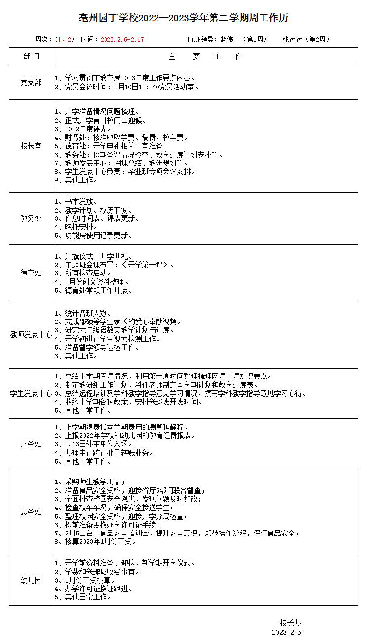 校工作日歷
