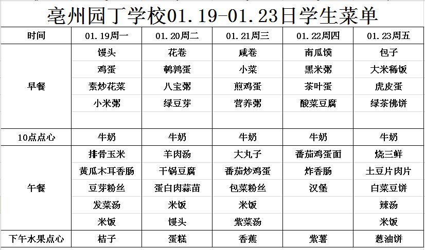 亳州園丁學校3.9---3.13日菜單