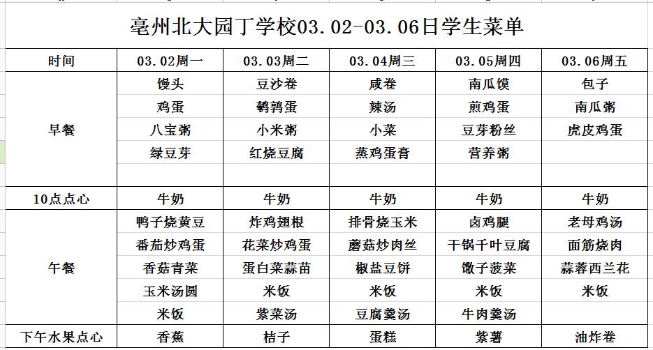亳州園丁學(xué)校3.9---3.13日菜單