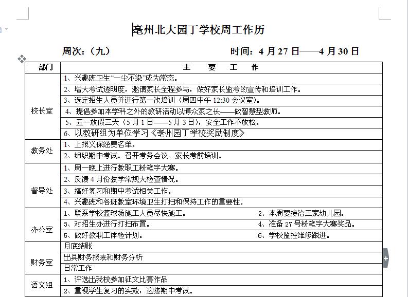 04.27—04.30日學(xué)校工作歷