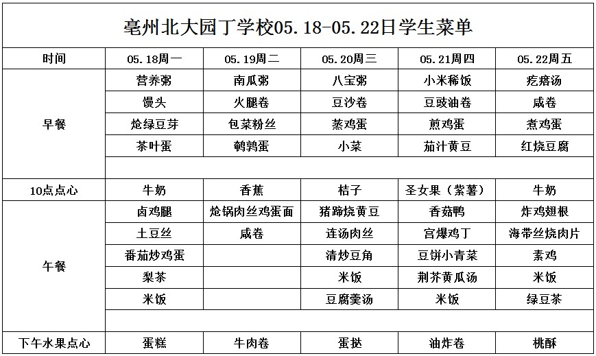 亳州園丁學校3.9---3.13日菜單