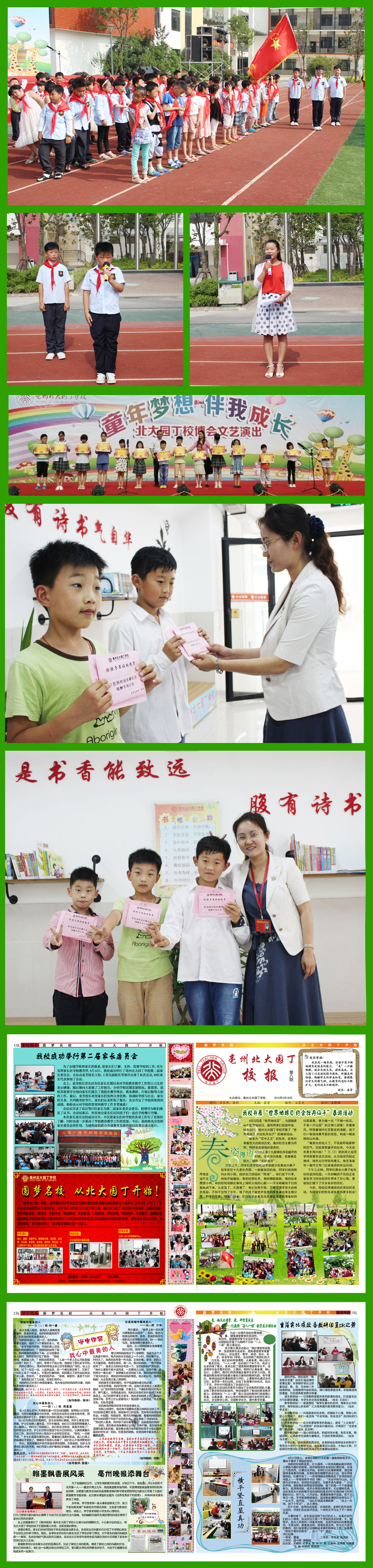 期間,教務(wù)處雷主任還宣讀了“亳州北大園丁學(xué)校2015年六一兒童節(jié)表彰決定”,對(duì)我校的優(yōu)秀班干部、優(yōu)秀少先隊(duì)員、學(xué)習(xí)小明星、閱讀小明星、環(huán)保小衛(wèi)士、交通小使者、書(shū)吧管理小明星、校報(bào)優(yōu)秀小作者及在亳州市教育局舉辦的創(chuàng)新作文大賽中獲得一、二、三等獎(jiǎng)的學(xué)生予以表彰,并由袁校長(zhǎng)和王校長(zhǎng)為他們頒發(fā)了獎(jiǎng)狀、獎(jiǎng)品、稿酬并合影留念。袁校長(zhǎng)還送上了對(duì)所有同學(xué)們的寄語(yǔ):希望全體同學(xué)向今天受表彰的學(xué)生學(xué)習(xí)。學(xué)習(xí)他們勤奮學(xué)習(xí)、精益求精、積極奮進(jìn)的學(xué)習(xí)態(tài)度,也希望受表彰的優(yōu)秀學(xué)生再接再厲,百尺竿頭,更進(jìn)一步,在今后的成長(zhǎng)道路中取得更大的成績(jī)。