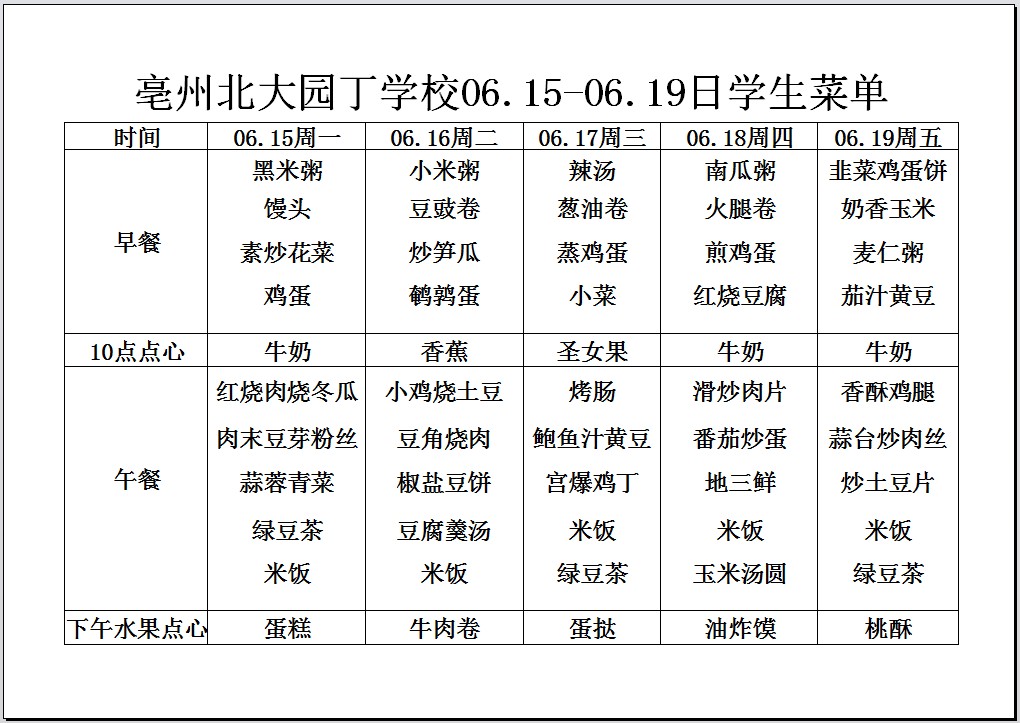 06.15--06.19日學(xué)生菜單
