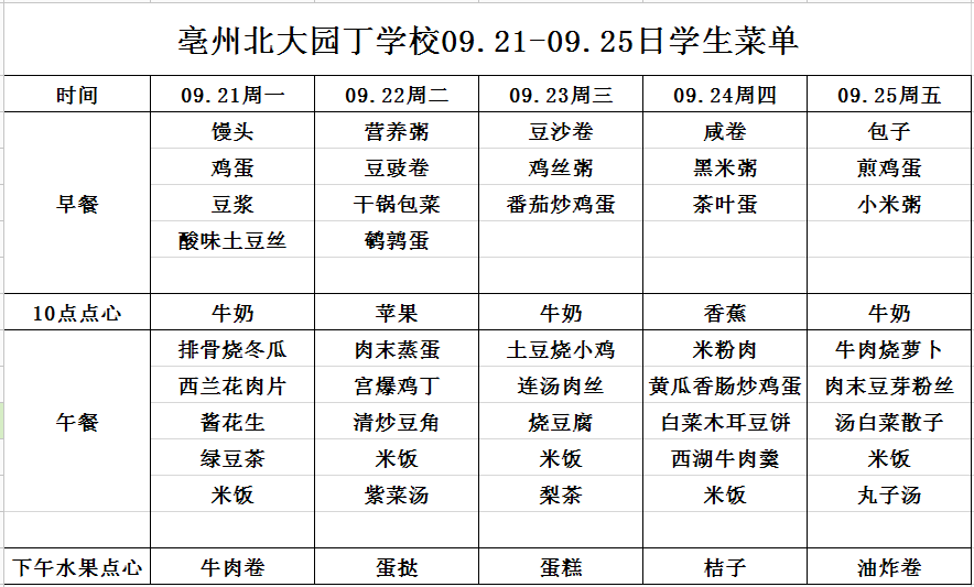09.21-09.25日學(xué)生菜單