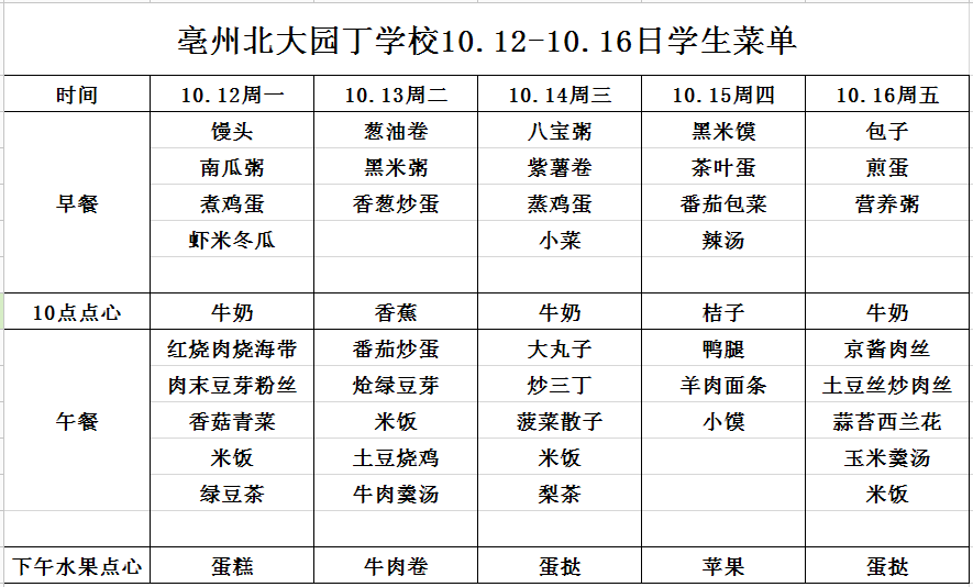 10.12-10.16日學(xué)生菜單