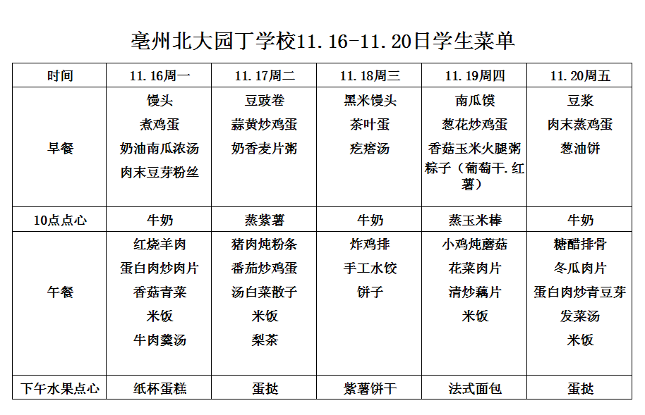 亳州園丁學校3.9---3.13日菜單