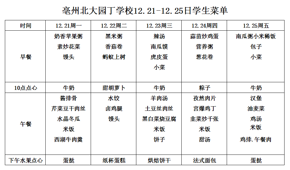 亳州園丁學校3.9---3.13日菜單