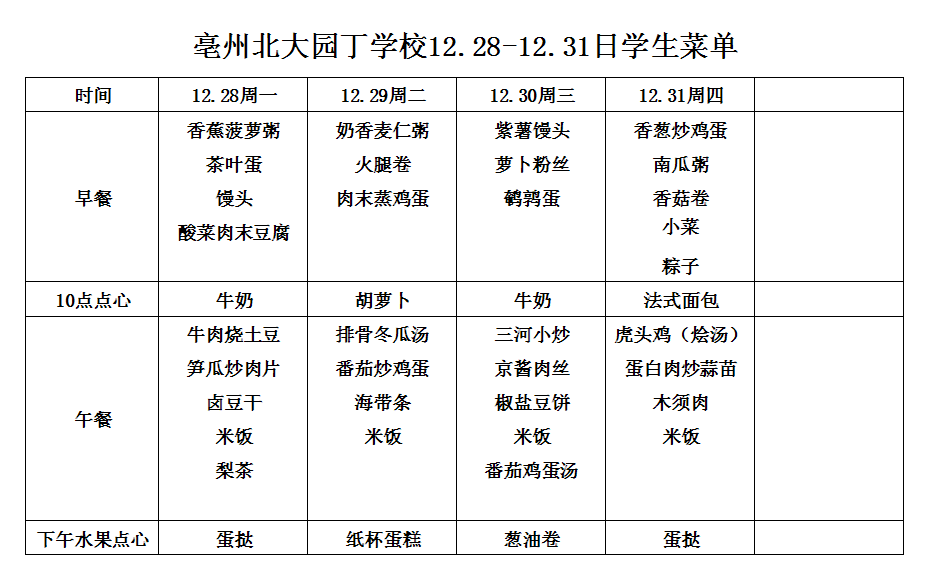 12.28-12.31日學(xué)生菜單