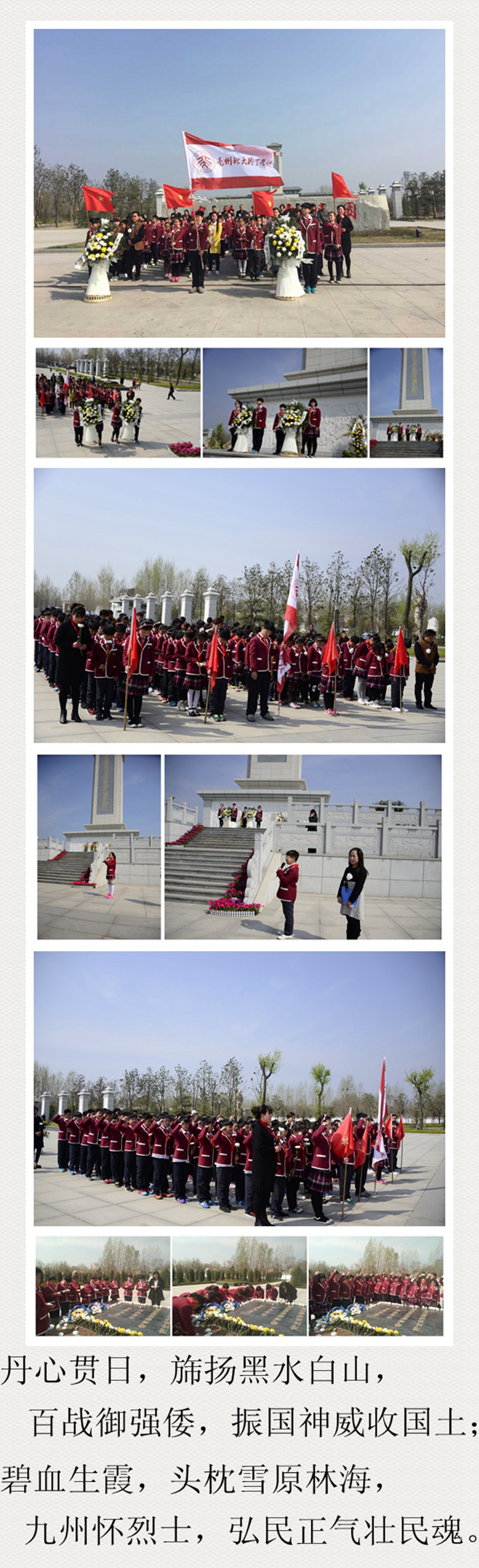 “青山綠水長(zhǎng)留生前浩氣,蒼松翠柏堪慰逝后英靈”。歷史的長(zhǎng)河記載了多少英雄的事跡,有多少人為了保衛(wèi)祖國(guó)和家鄉(xiāng)獻(xiàn)出了寶貴的生命,烈士們走了,但他們的事跡會(huì)幻化成永不磨滅的豐碑,高高矗立在我們后繼之人的心中。