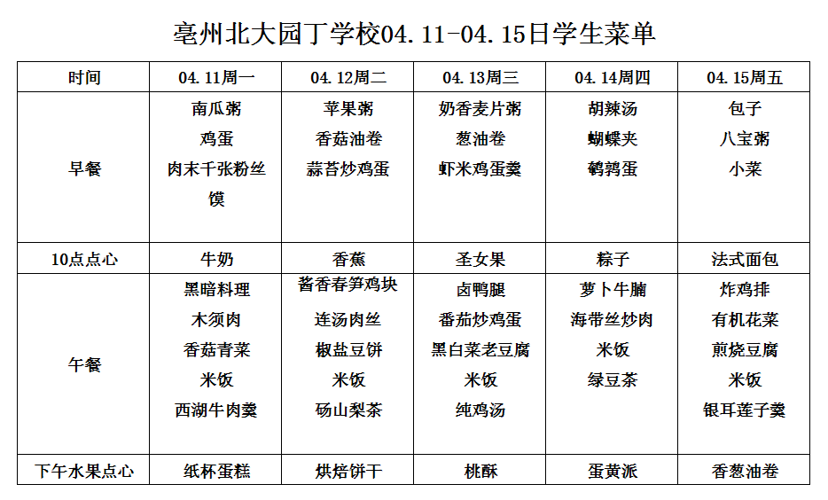 04.11-04.15日學(xué)生菜單