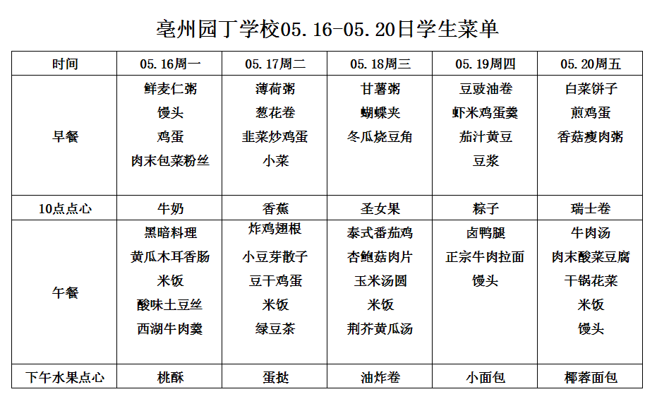 05.16-05.20日學(xué)生菜單