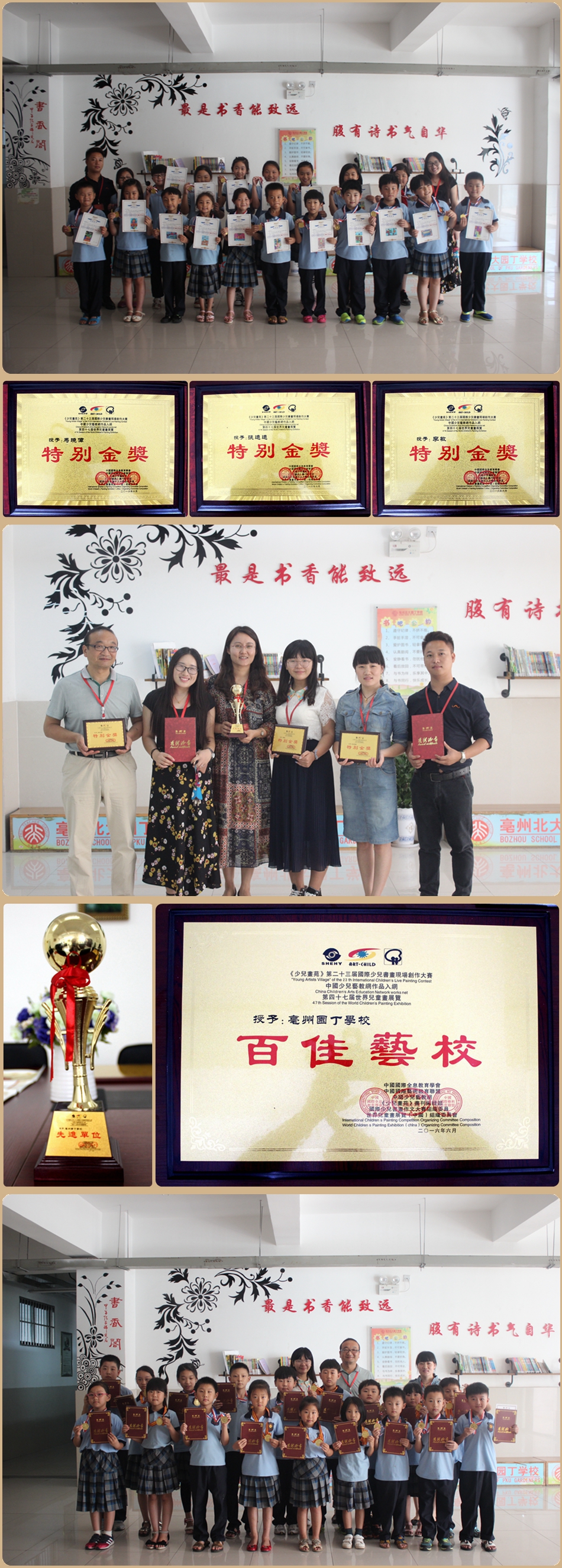 開學(xué)第一周,從《少兒藝苑》第23屆國(guó)際少兒書畫大賽組委會(huì)和第17屆“雛鷹杯”全國(guó)青少年兒童書畫大賽組委會(huì)分別傳來佳音,我校送審參賽的作品中,獲得特別金獎(jiǎng)的9人,金獎(jiǎng)30人,其他獎(jiǎng)項(xiàng)若干名;王曉雨與李新喜老師獲得特等指導(dǎo)老師稱號(hào);張遠(yuǎn)遠(yuǎn),李敏與馬曉偉老師分別獲輔導(dǎo)特別金獎(jiǎng)。同時(shí),大賽組委會(huì)也為學(xué)校頒發(fā)了“百佳藝校”和“全國(guó)優(yōu)秀教學(xué)基地”牌匾。