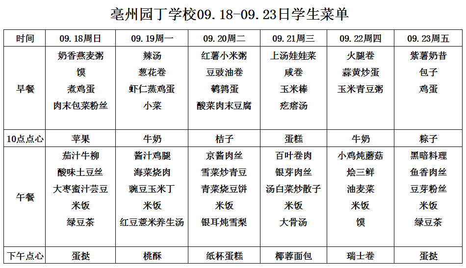 09.18-09.23日學(xué)生菜單