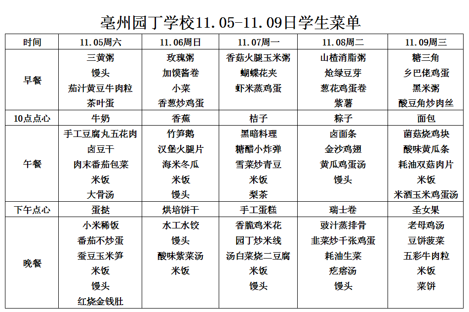 亳州園丁學(xué)校3.9---3.13日菜單