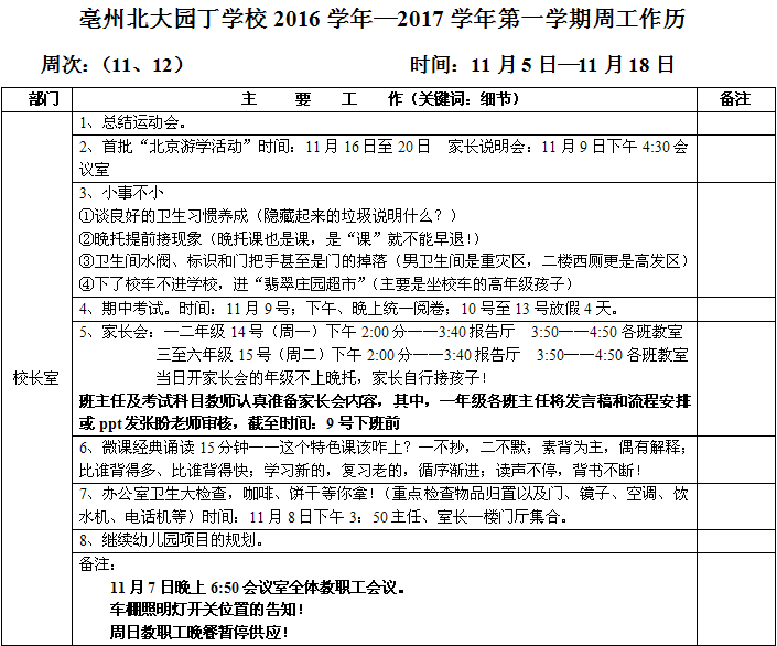 11.05—11.18學(xué)校周工作日歷