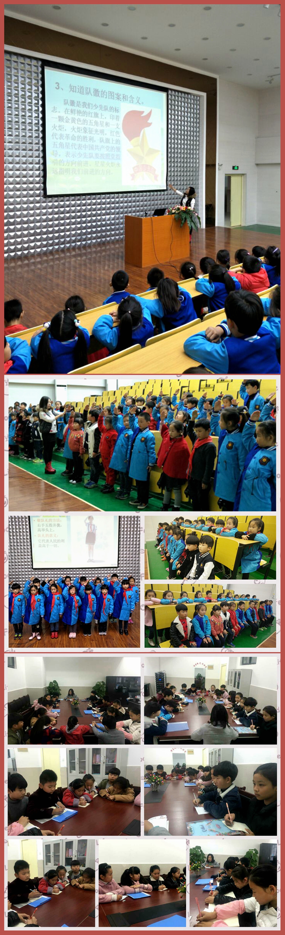 整場活動有條不紊,細致入微,讓在場的老師和同學(xué)們對少先隊的有關(guān)知識和行為禮儀等內(nèi)容有了更為深刻的認識,有效促進我校的德育工作,創(chuàng)設(shè)優(yōu)良的育人環(huán)境。