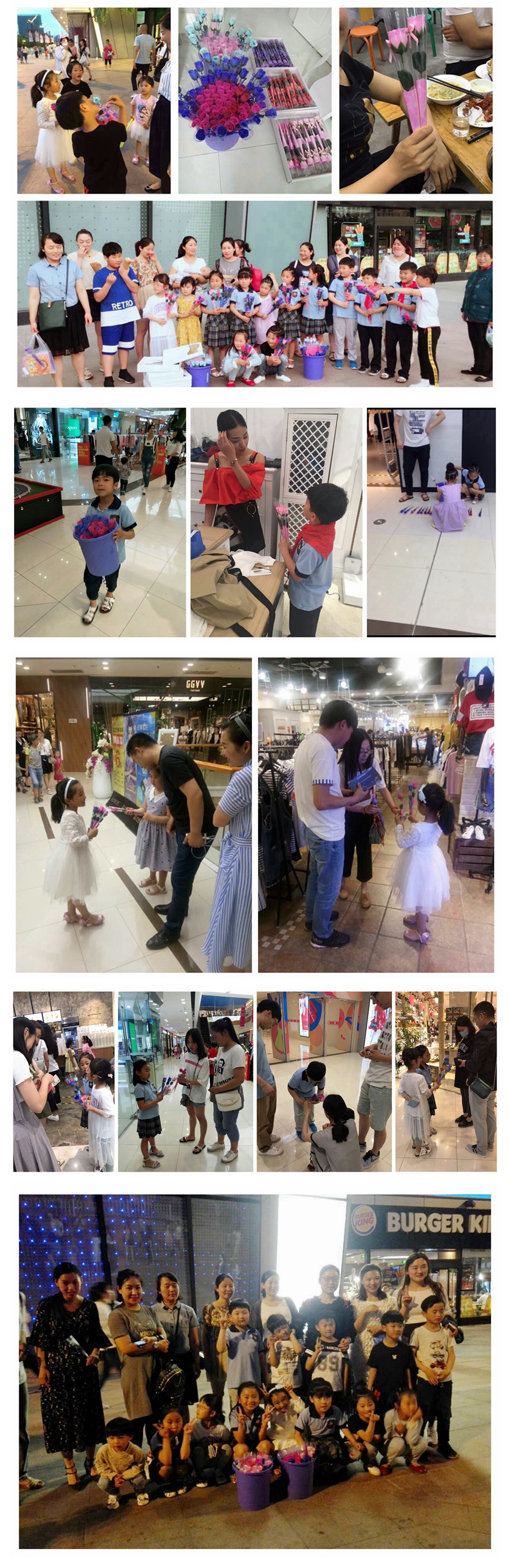 孩子們分三組,分散在萬達廣場的一二三層進行銷售;每個孩子手上都拿了一捧花,如果全部售出,可以到一樓總部進行補貨。任務(wù)分配完畢,孩子們就開始大顯身手了,有的孩子是溫柔甜美型的銷售員,始終保持微笑,以情動人;有的孩子是賺錢型的銷售人員,特別機靈能說會道;有的孩子是守株待兔型的銷售員,靜靜地等待客人來買花;還有的是專業(yè)型的銷售員,有敬業(yè)的態(tài)度,又不耐其煩的向客人介紹自己的花……在銷售花的過程中,遇到了很多很善良的叔叔阿姨,很支持孩子們的這次活動,給孩子們很大的自信。