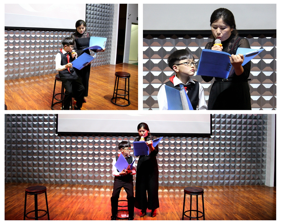 多次在珠心算比賽中獲得榮譽(yù)的二(2)班田一同學(xué),這是第一次和媽媽一起合作朗讀,舞臺(tái)上她們感人的對(duì)白《有你真好》,傳遞著濃濃的親子之情。