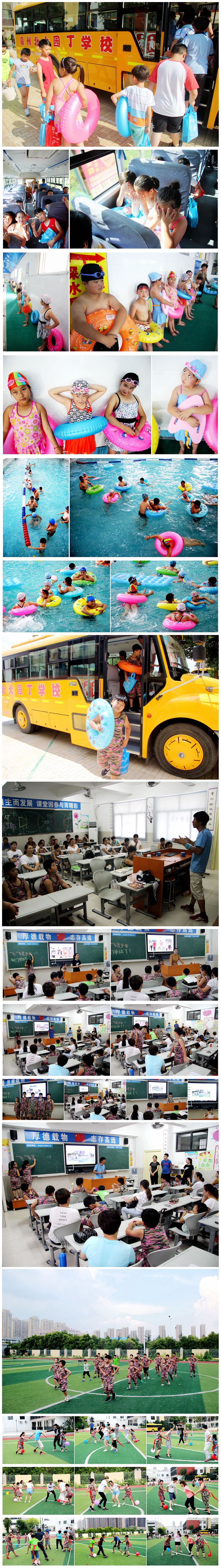 在夏令營的這段時(shí)間里,小營員們掌握了很多新技能。最受歡迎的就是游泳。因?yàn)闋I員們可以穿著鮮艷的泳衣,拿著漂亮的泳圈,帶著愉悅的心情暢游在清涼的泳池里。他們在泳池里潛水、游泳比賽,玩兒的不亦樂乎。