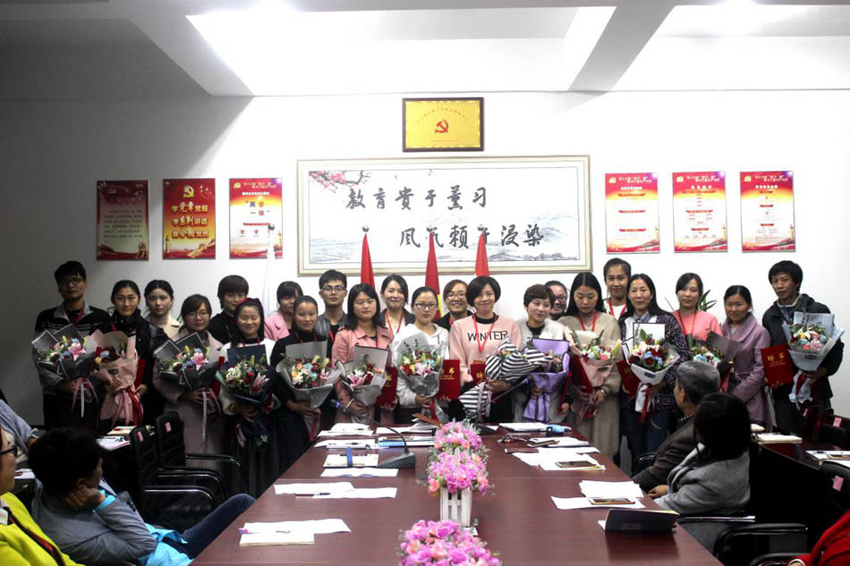徒弟向指導(dǎo)教師鮮花并合影留念
